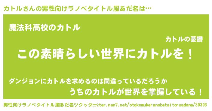 | ヒーロー風カッコイイあだ名 | 『仮面カトダー』『ウルトラ戦士カトル』 |