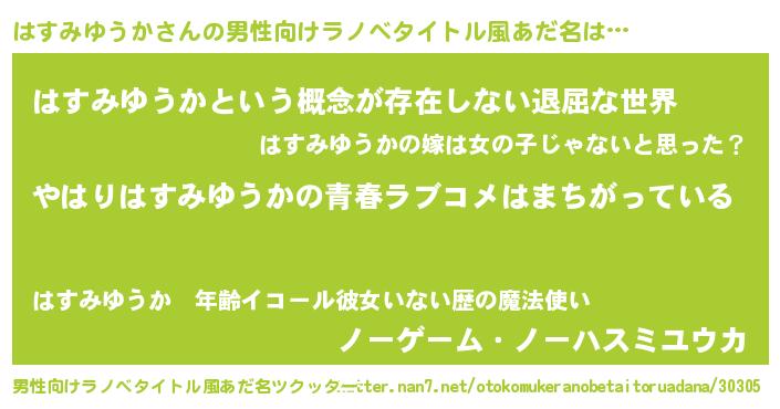 | 女子向けラノベタイトル風あだ名 | 『はすみゆうかの雑貨屋さん』 |