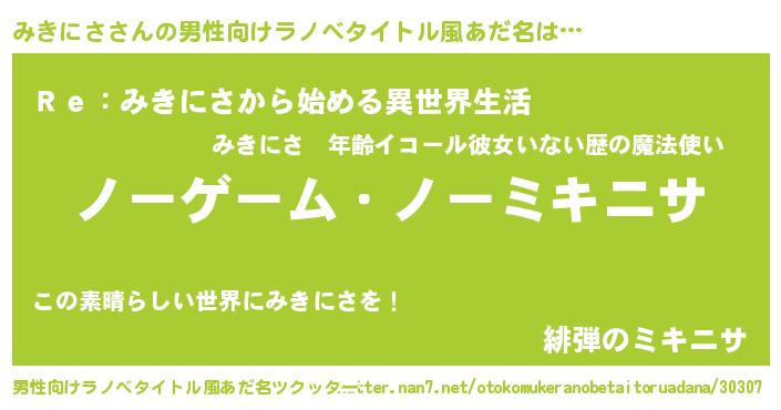 | 肩書あだ名 | 『みきにさ教授』『みきにさ閣下』 |
