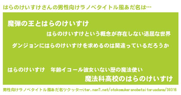 | 女子向けラノベタイトル風あだ名 | 『はらのけいすけは平凡を望む』 |