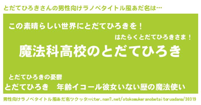 | 女子向けラノベタイトル風あだ名 | 『とだてひろきなんてお断りですっ。』 |