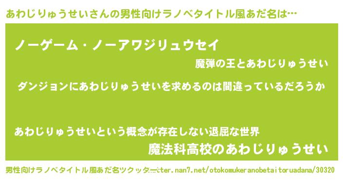 | 胡散臭い通販商品みたいなあだ名 | 『信頼と実績のペンダント…その名も「あわじりゅうせい」』 |