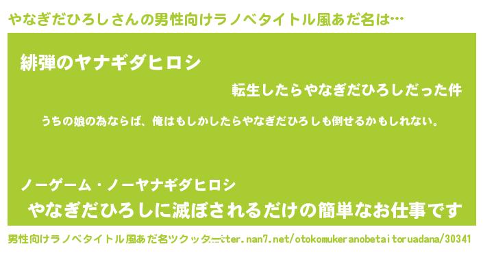 | 女子向けラノベタイトル風あだ名 | 『やなぎだひろし伯爵の花嫁』 |