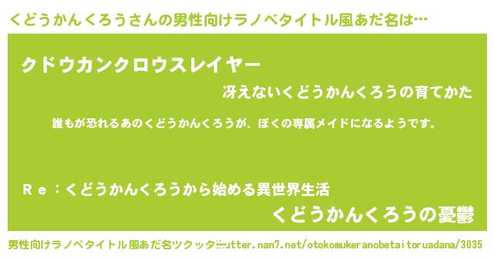 | 女子向けラノベタイトル風あだ名 | 『くどうかんくろうの契約王妃』 |