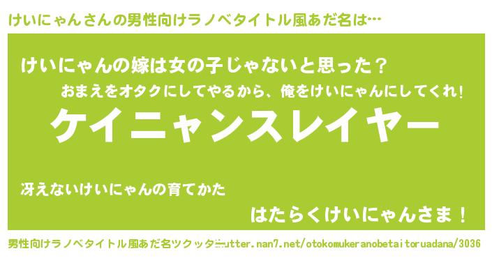 | 胡散臭い通販商品みたいなあだ名 | 『信頼と実績のネックレス…その名も「けいにゃん」』 |