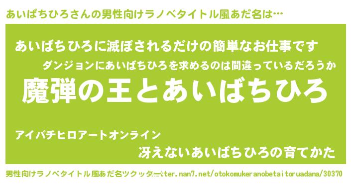 | 意味不明あだ名 | 『住所不定無職あいばちひろ(59歳)』 |