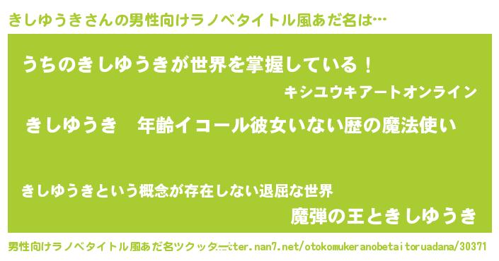 | 女子向けラノベタイトル風あだ名 | 『きしゆうきの玉の輿計画!』 |