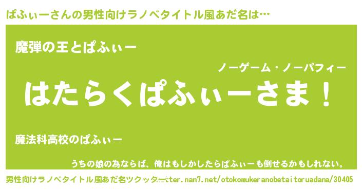 | 意味不明あだ名 | 『住所不定無職ぱふぃー(2歳)』 |