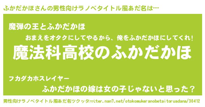 | 意味不明あだ名 | 『自称ふかだかほ』 |