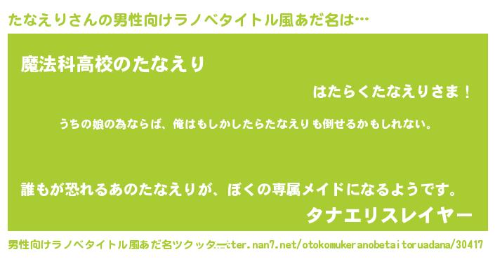 | 意味不明あだ名 | 『たなえりフォーエバー』『自称たなえり』 |