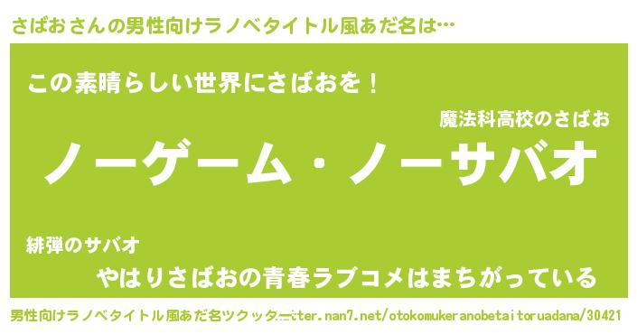 | 女子向けラノベタイトル風あだ名 | 『死神さばおの再婚』『さばお伯爵の花嫁』 |