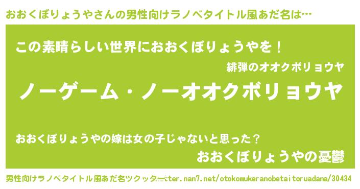 | 女子向けラノベタイトル風あだ名 | 『死神おおくぼりょうやの再婚』 |