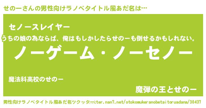 | 女子向けラノベタイトル風あだ名 | 『死神せのーの再婚』『せのーの婚約者』 |