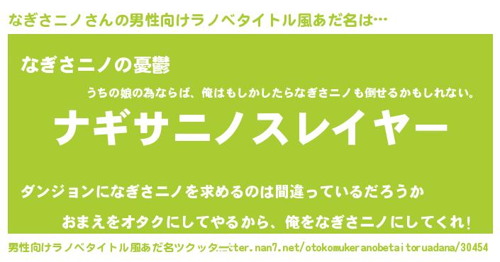 | ヒーロー風カッコイイあだ名 | 『スーパーナギサニノ』『炎刃騎士ナギ』 |
