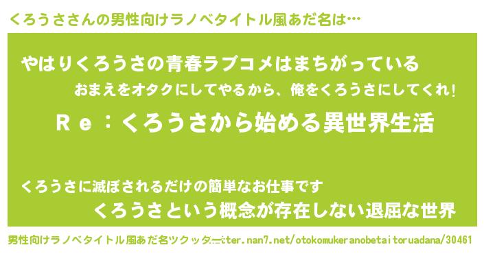 | ヒーロー風カッコイイあだ名 | 『サイバー戦士クロウサ』『ネオクロウサ』 |