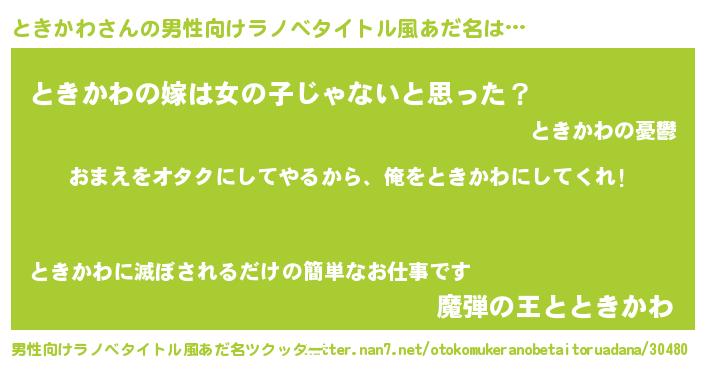 | ヒーロー風カッコイイあだ名 | 『友情の使者ときかわ』『黄金騎士トキ』 |