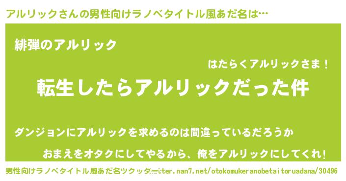 | 女子向けラノベタイトル風あだ名 | 『アルリックの玉の輿計画!』 |
