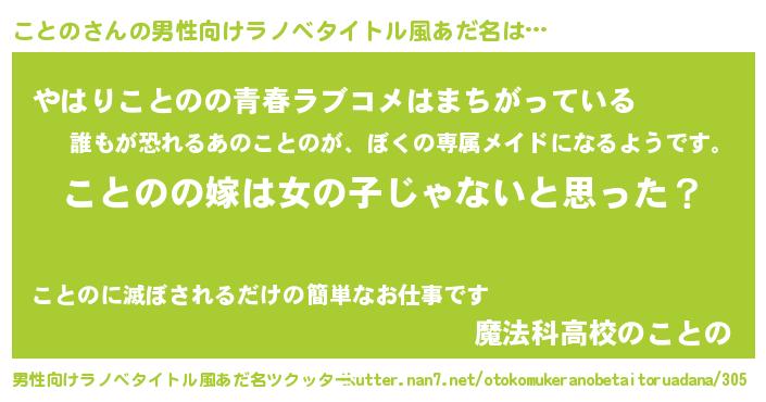 | 女子向けラノベタイトル風あだ名 | 『ことの様がみてる』『ことの伯爵の花嫁』 |