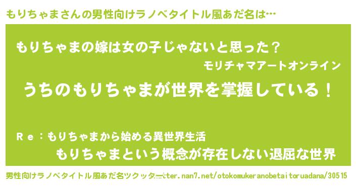 | 女子向けラノベタイトル風あだ名 | 『男装もりちゃまの憂鬱な任務』 |