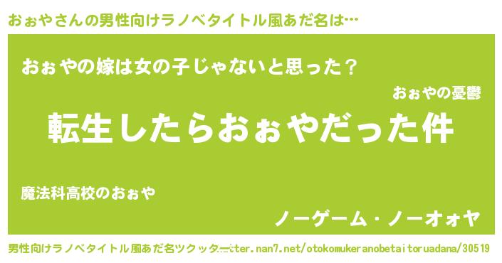 おぉやさんの男性向けラノベタイトル風あだ名をツクッター!