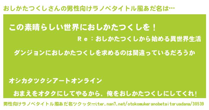 | 女子向けラノベタイトル風あだ名 | 『おしかたつくしは平凡を望む』 |