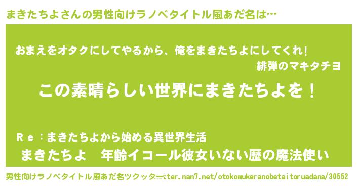 | 意味不明あだ名 | 『住所不定無職まきたちよ(11歳)』 |