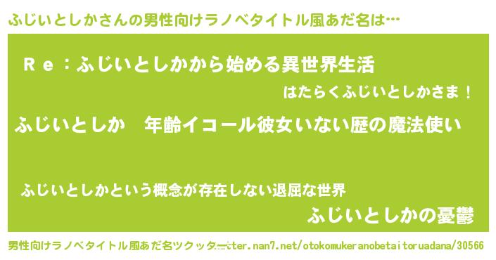 | 女子向けラノベタイトル風あだ名 | 『ふじいとしかの玉の輿計画!』 |