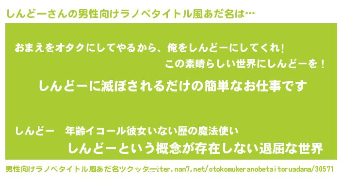 | ヘコむあだ名 | 『しんどー(小並感)』『しんを』 |