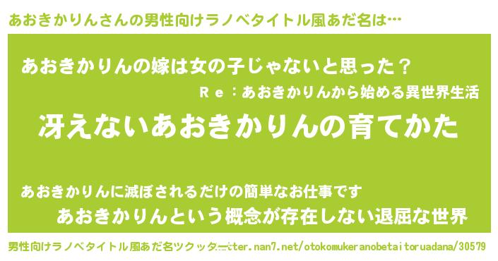 | 女子向けラノベタイトル風あだ名 | 『シンデレラあおきかりん家の靴箱館』 |