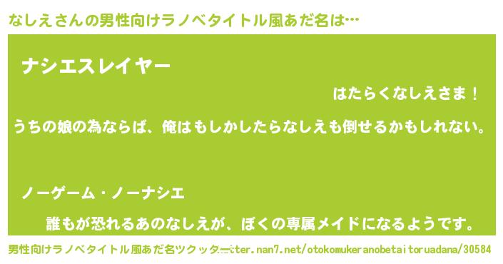 なしえさんの男性向けラノベタイトル風あだ名をツクッター!