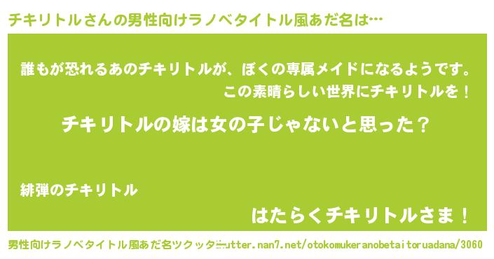 | 意味不明あだ名 | 『とにかく怪しいチキリトル』 |