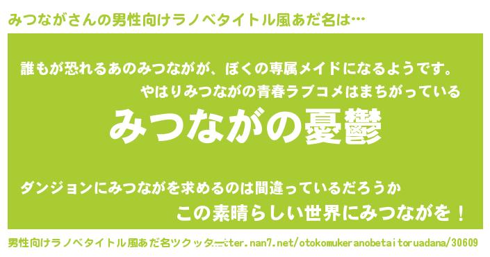 | 胡散臭い通販商品みたいなあだ名 | 『必ず成功する霊験あらたかなお札…その名も「みつなが」』 |