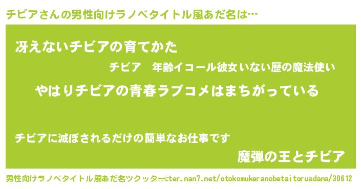 | 女子向けラノベタイトル風あだ名 | 『チビアの雑貨屋さん』 |