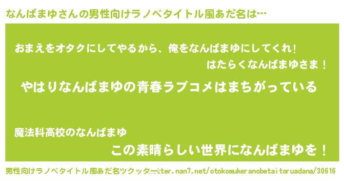 | 伝説のあだ名 | 『秘められし陰陽師なんばまゆ』 |