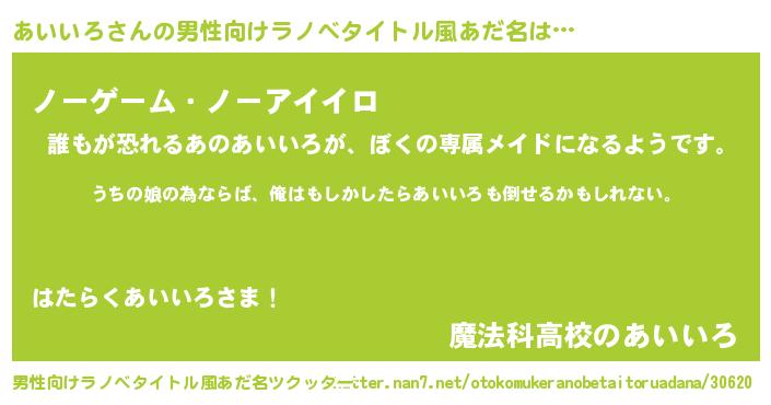 | 女子向けラノベタイトル風あだ名 | 『あいいろ伯爵の花嫁』 |