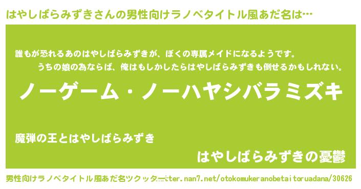 | ヘコむあだ名 | 『はやしばらみずき(笑)』『はやにー』 |