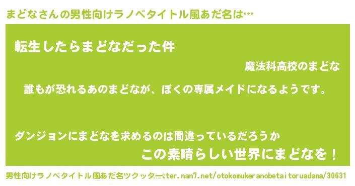 まどなさんの男性向けラノベタイトル風あだ名をツクッター!