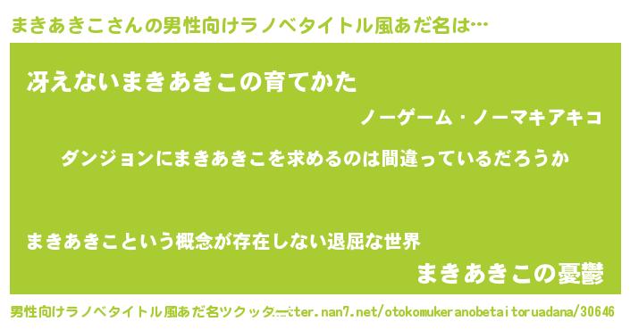 | 意味不明あだ名 | 『とにかく怪しいまきあきこ』 |