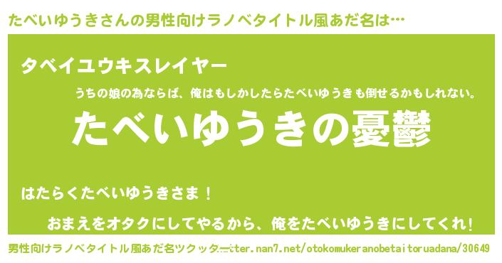 | 肩書あだ名 | 『たべいゆうき御曹司』 |