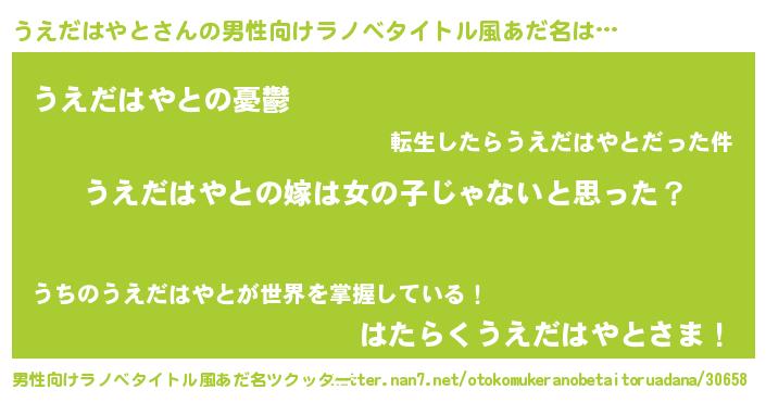 | 女子向けラノベタイトル風あだ名 | 『うえだはやと様がみてる』 |