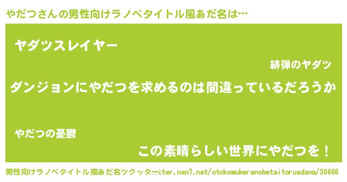 | 胡散臭い通販商品みたいなあだ名 | 『信頼と実績のペンダント…その名も「やだつ」』 |