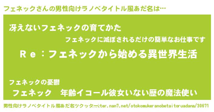 | 女子向けラノベタイトル風あだ名 | 『フェネックストレイドッグス』 |