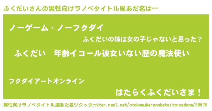 | 女子向けラノベタイトル風あだ名 | 『ふくだいの玉の輿計画!』 |