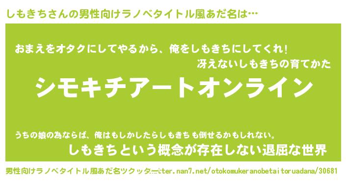 | ヘコむあだ名 | 『しもにゅー』『しもきち(遠い目)』 |