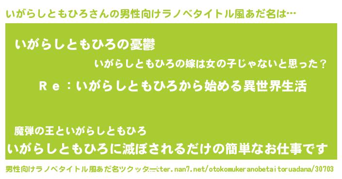 | 女子向けラノベタイトル風あだ名 | 『いがらしともひろストレイドッグス』 |