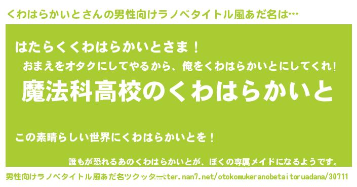 | 女子向けラノベタイトル風あだ名 | 『くわはらかいとなんてお断りですっ。』 |
