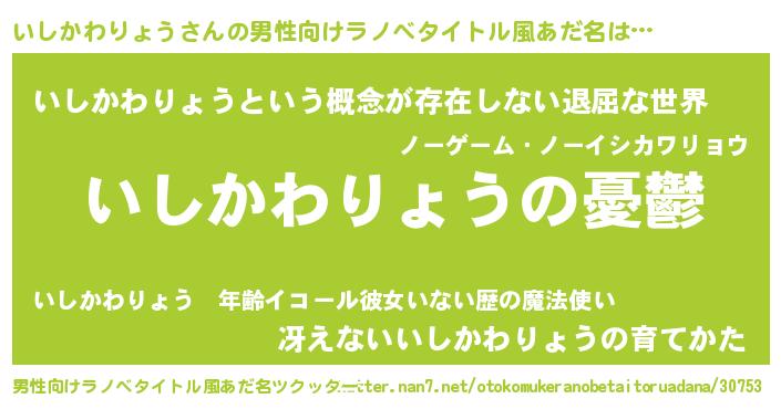 | 胡散臭い通販商品みたいなあだ名 | 『必ず成功する霊験あらたかなお札…その名も「いしかわりょう」』 |