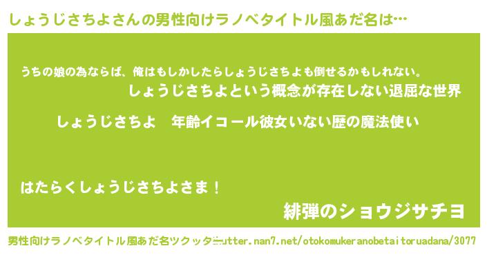 | 女子向けラノベタイトル風あだ名 | 『しょうじさちよの玉の輿計画!』 |