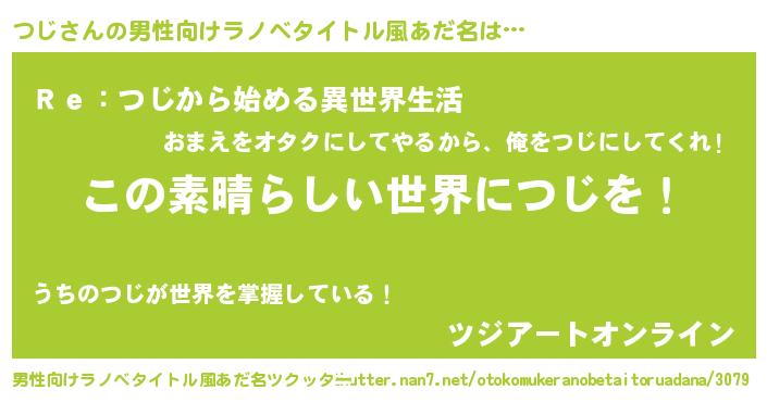 | 女子向けラノベタイトル風あだ名 | 『悪役つじに転生したようですが、知った事ではありません』 |