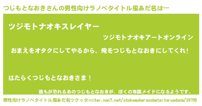 | 女子向けラノベタイトル風あだ名 | 『つじもとなおき夫妻のなれそめ』 |